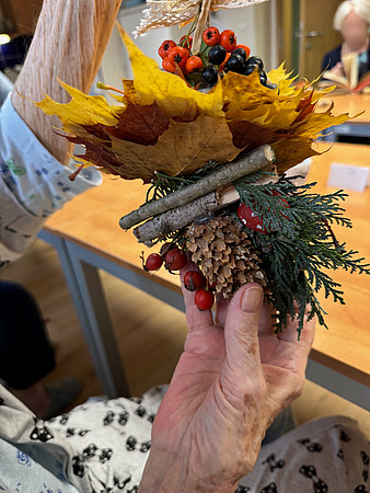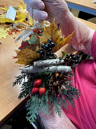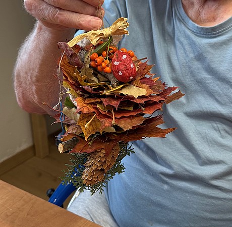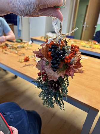 Příjemné podzimní odpoledne jsme společně strávili při arteterapii s našimi klienty. U voňavé kávy a drobného občerstvení jsme si povídali, zpívali oblíbené písničky a nechali se inspirovat barvami podzimu. Společně jsme vyráběli závěsné ozdoby z větviček, šišek, jeřabin a nádherně zbarveného listí.
