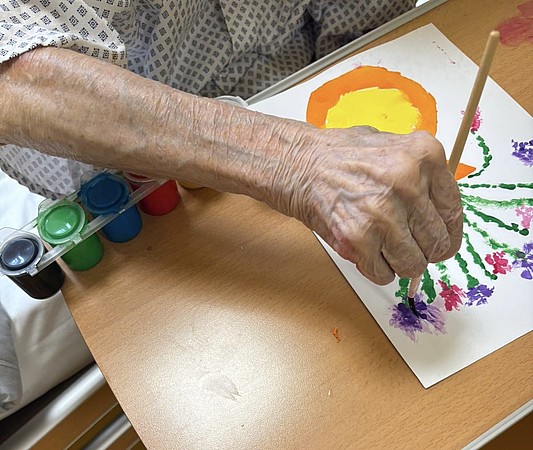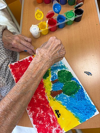 Terapeutky Lucie a Andrea se věnují individuální arteterapii, která přináší radost i těm, kteří se kvůli zdravotním omezením nemohou aktivně zapojit do skupinových aktivit.