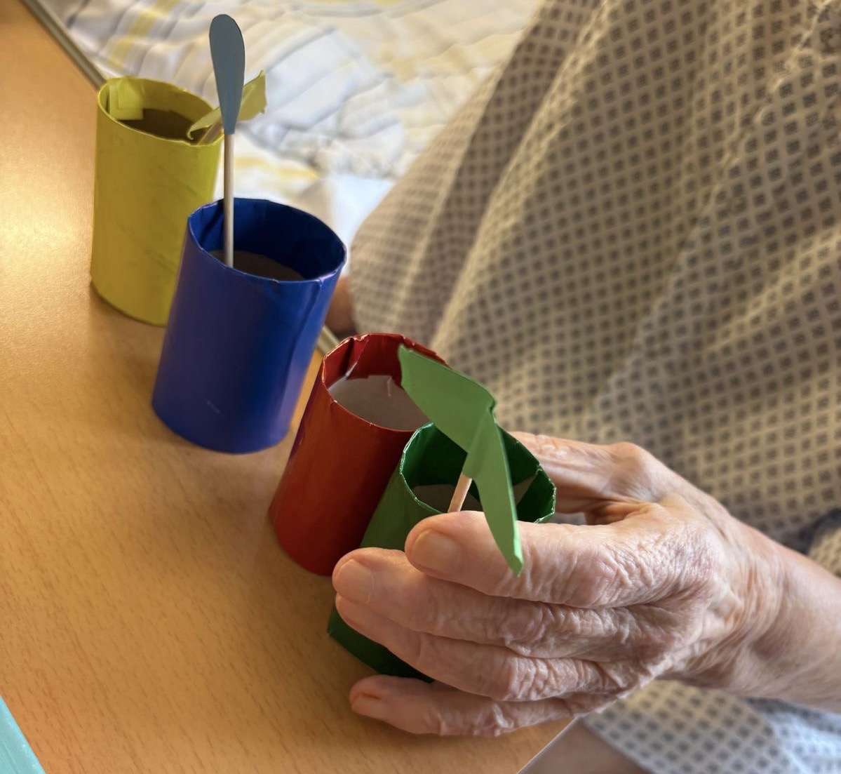 Jedním z nejkrásnějších momentů arteterapie je okamžik, kdy pacient drží v rukou hotový výrobek. Ať už jde o malbu, dekoraci nebo drobný ruční výrobek, každý kus je důkazem kreativity, úsilí a radosti z tvorby.