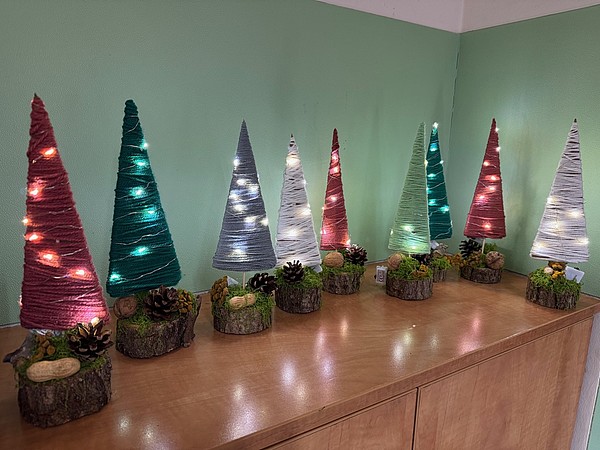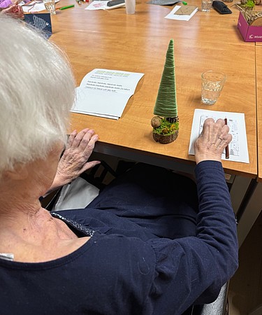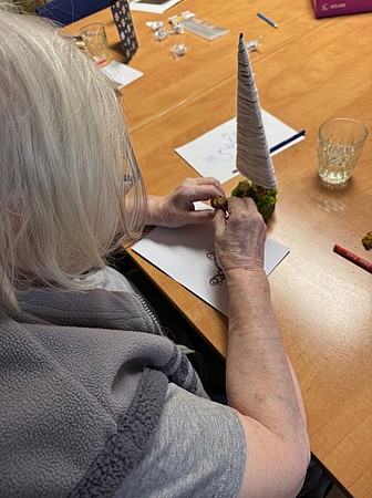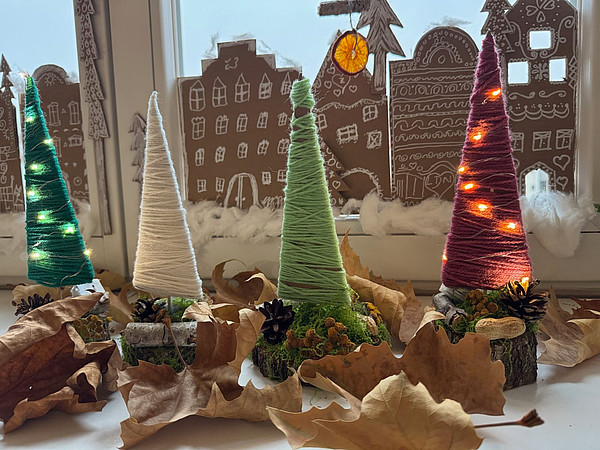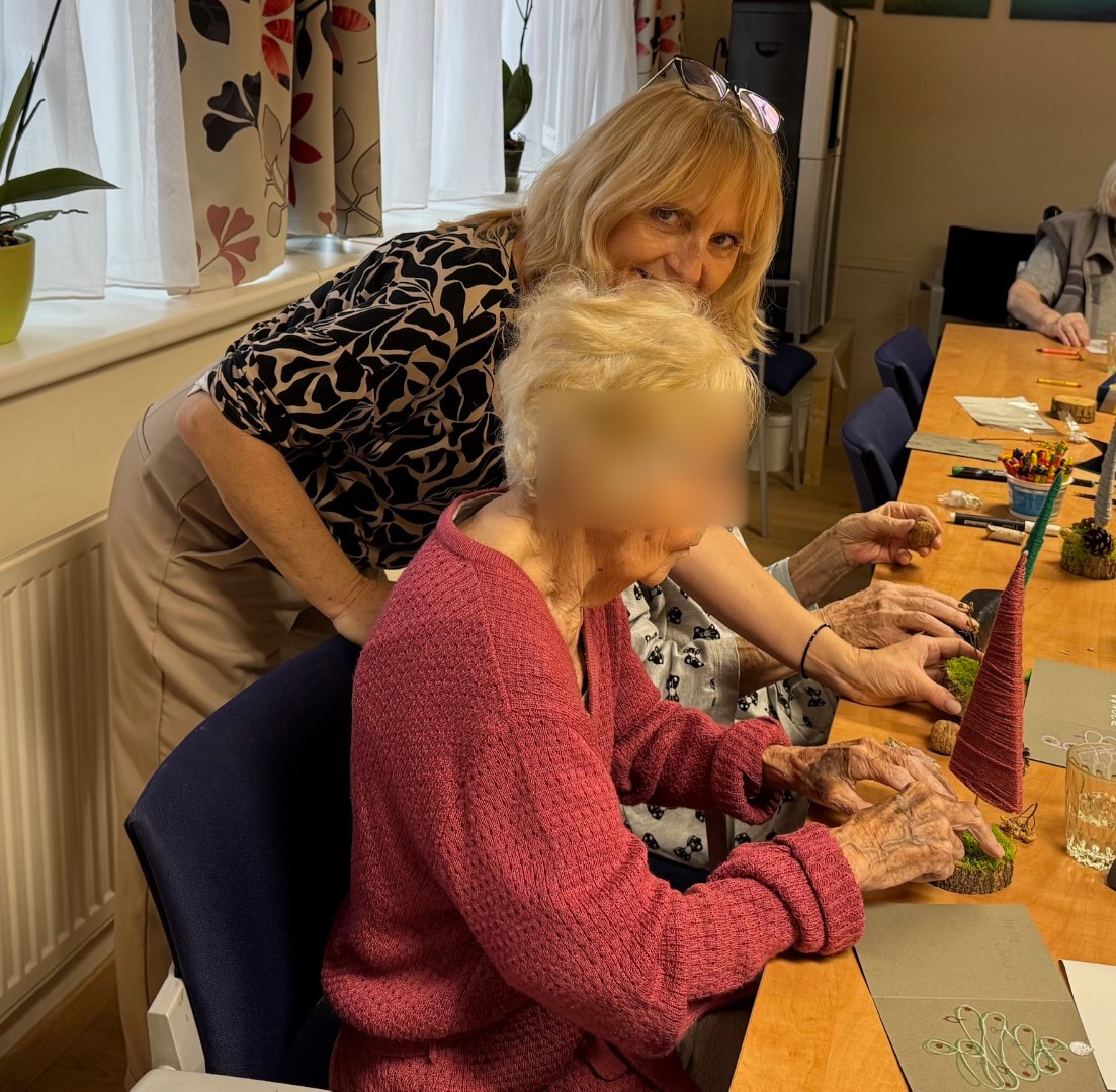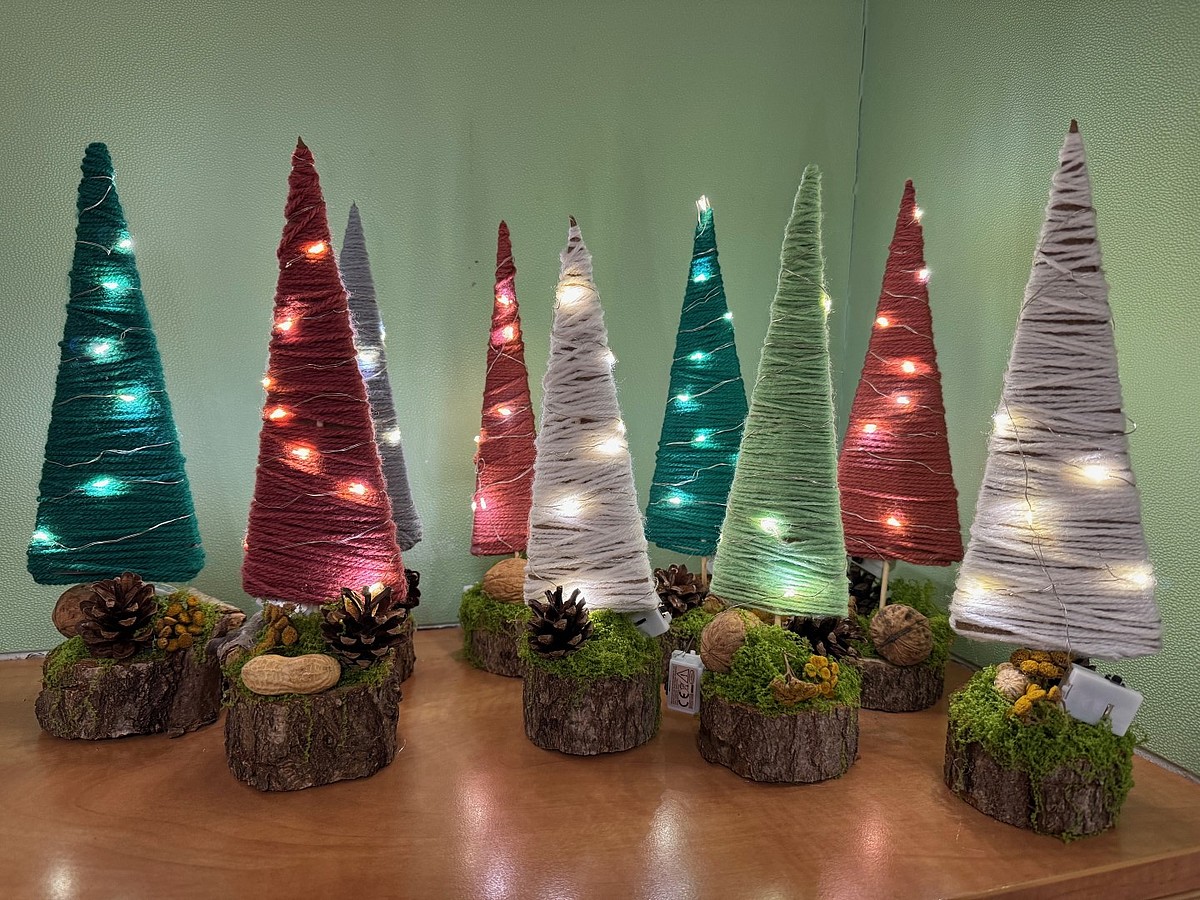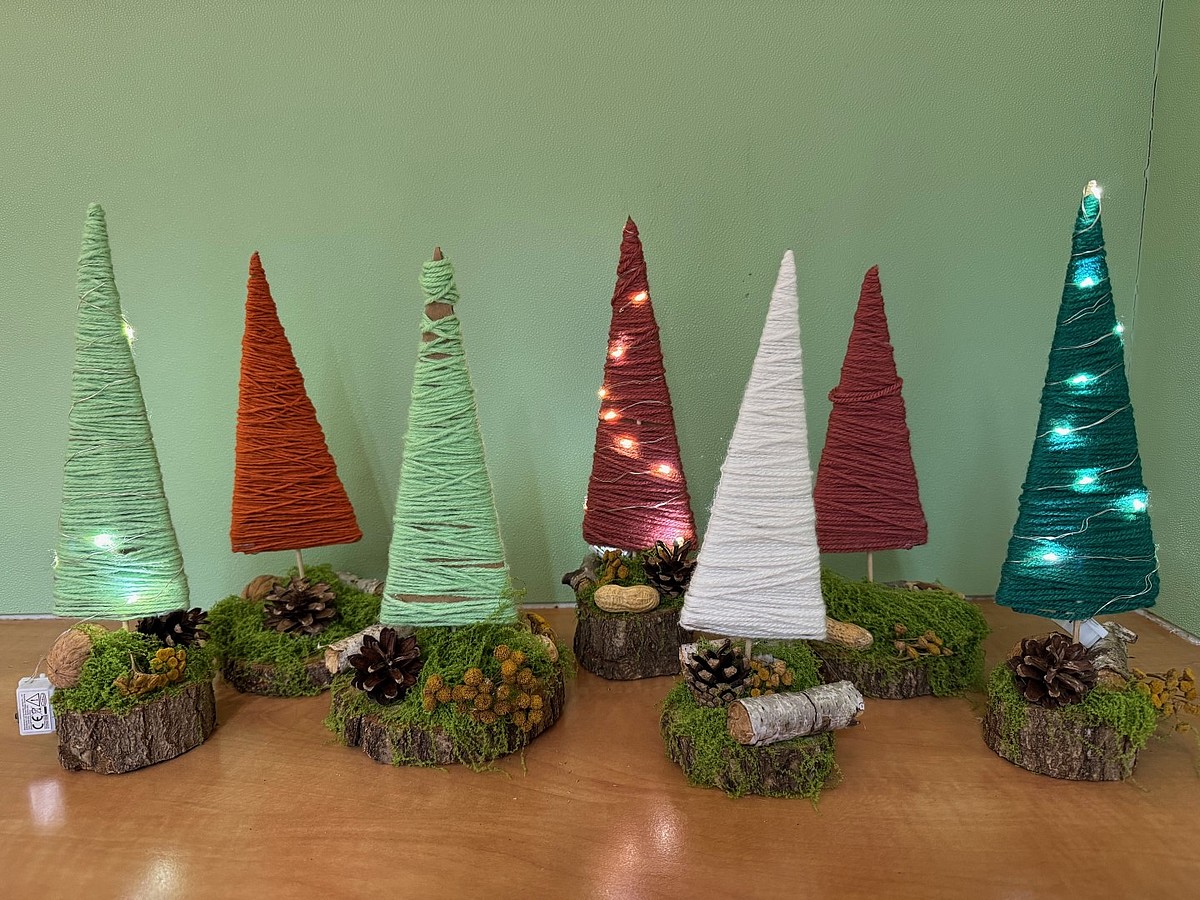 K výrobě jsme přitom potřebovaly jen pár jednoduchých materiálů: dřevěné podložky z kmene stromů, kousek kartonu, špejli, bavlnky, pár šišek a ořechů a drobná světýlka. V rukou klientek se však tyto obyčejné věci proměnily v nádherné, dokonalé dekorace.