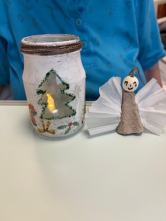 Klienti měli opět možnost vyzkoušet si různé výtvarné techniky. Vznikaly tak malované obrazy, andílci z papíru i originální lucerničky zdobené ubrouskovou technikou.